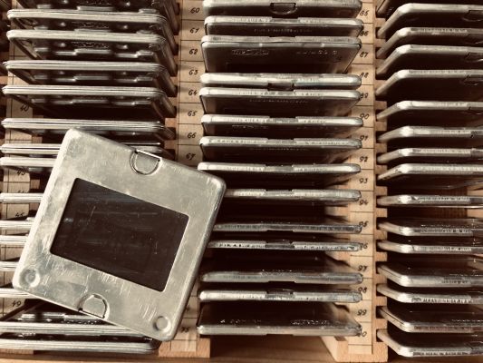 Plastové rámiky obsahujúce jeden záber pozitívneho filmu. Ako učebná pomôcka sa používali série takýchto rámikov premietané za sebou na projektore.