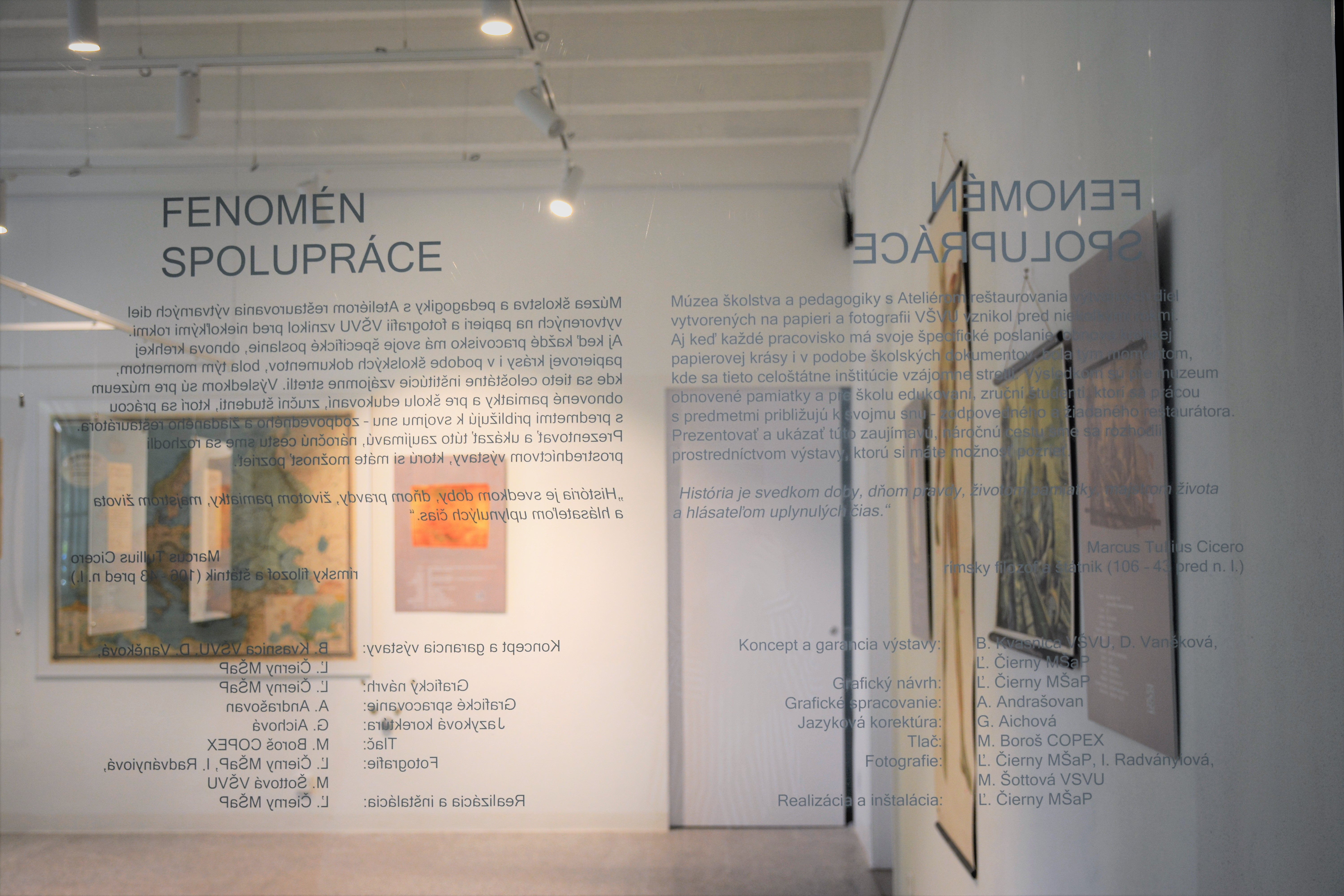 Výstava v niekoľkých častiach priniesla poznatky o spolupráci pri odbornej múzejnej činnosti akou je konzervovanie a reštaurovanie, ktoré Múzeum školstva a pedagogiky realizovalo spolu s ateliérom reštaurovania papiera a fotografie na Vysokej škole výtvarných umení v Bratislave.